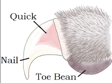 - Найдите розовую часть внутри когтя — это живая ткань (её резать нельзя).